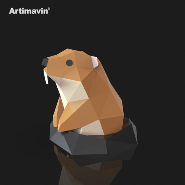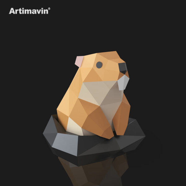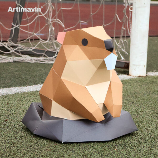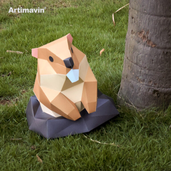 Cute Marmot Standing with Big Teeth 3D Paper Model Easy DIY Craft Kit Animal Lover Gift